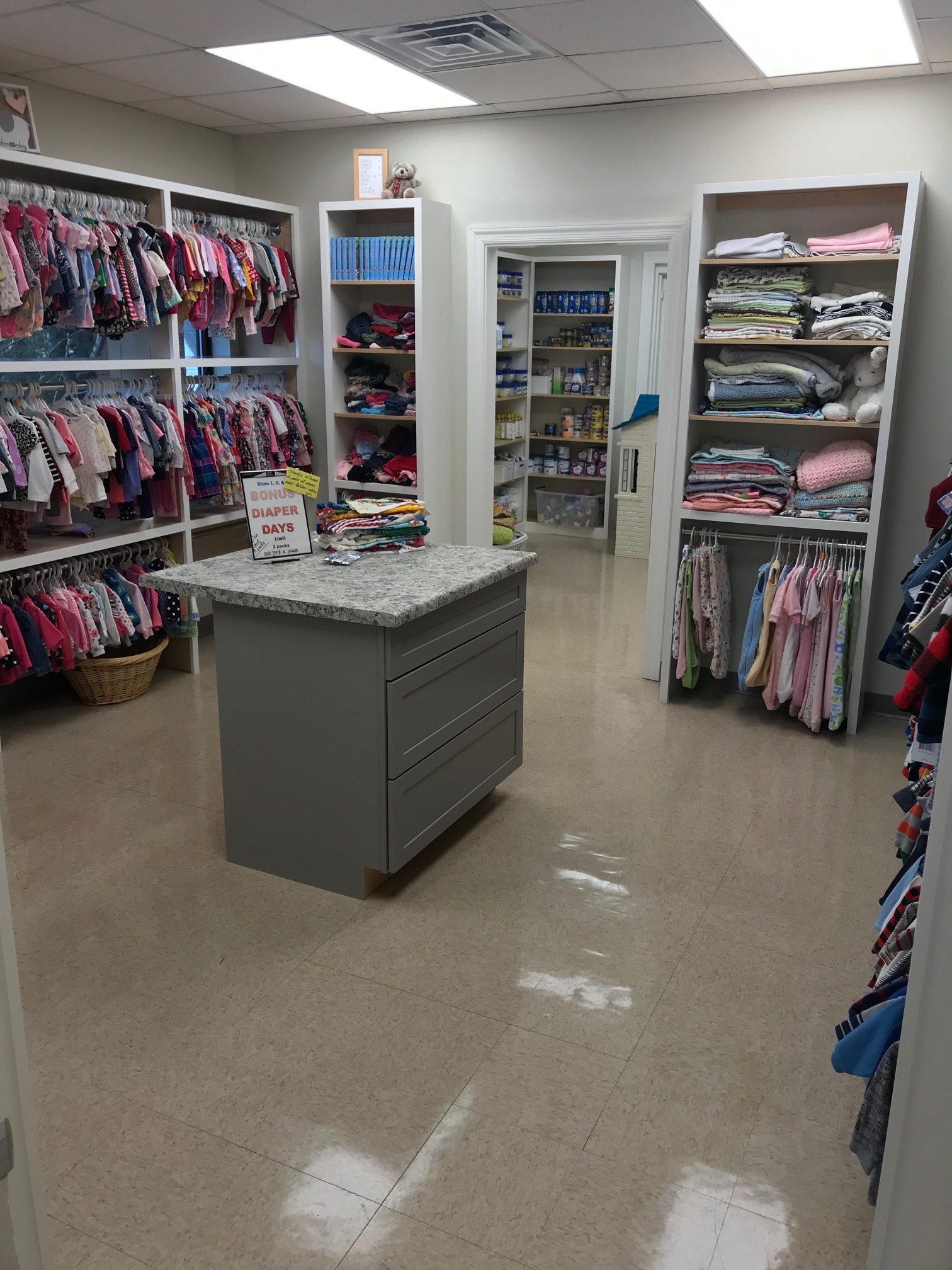 Baby Bucks can be used in our Baby Boutique, a fully stocked shop with diapers, wipes, baby clothes, car seats, formula, and more—all available at no cost to you!